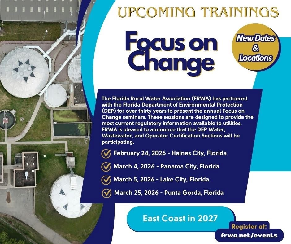 For over thirty years FRWA has partnered with the Florida Department of Environmental Protection to bring you this vital training to keep the operators in the State of Florida up to date on the regulations and issues affecting the industry.